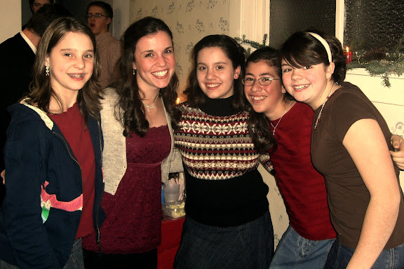Anyway, the rest of the weekend was pretty much devoted to schoolwork for Jordan. So Sunday night I went to our church's Christmas program while poor Jordan stayed at home and worked on writing his last paper of the semester. :P The program was wonderful: the Gospel was the focal point, and the kids did a great job at presenting it! Afterwards, we had a fellowship time in the basement. The place was packed out, and it was so fun! Here are some pics from that night (left to right: Jessie, Me, Natasha, Alyssa, and Emi):