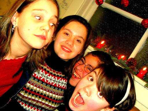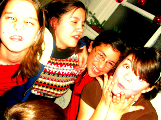 Anyway, the rest of the weekend was pretty much devoted to schoolwork for Jordan. So Sunday night I went to our church's Christmas program while poor Jordan stayed at home and worked on writing his last paper of the semester. :P The program was wonderful: the Gospel was the focal point, and the kids did a great job at presenting it! Afterwards, we had a fellowship time in the basement. The place was packed out, and it was so fun! Here are some pics from that night (left to right: Jessie, Me, Natasha, Alyssa, and Emi):